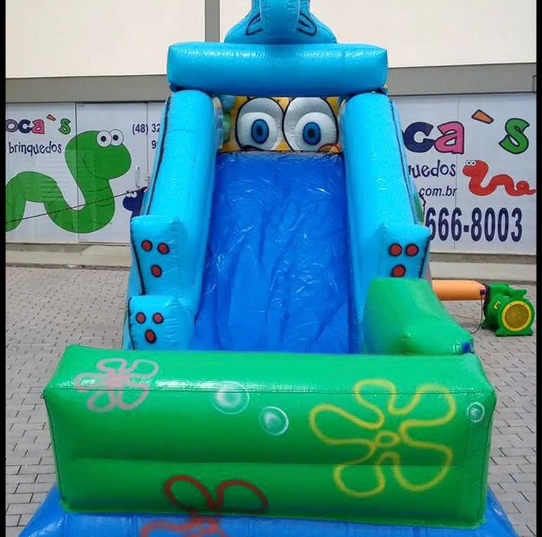Mergulhe fundo na diversão da Fenda do Biquíni! Este castelo inflável traz toda a alegria do Bob Esponja e seus amigos para a sua festa.